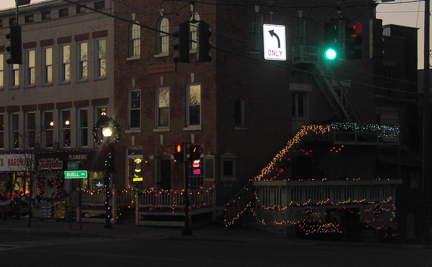 If you're in the village after dark, you'll be dazzled by the lights along West Main Street, starting at the Red Lion Pub!